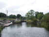 Looking back down the Woodford River. Bellaheady Bridge and visitor mooring.