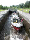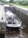 Kilclare Lock No 8. MV Knocknagow just makes it over the cill. Shannon Erne