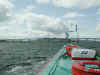 both are in the loch) flying up into the air beside the boat. After the bridge