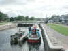 Muirtown Staircase Top Lock. We have been joined by a small Shetland Cruiser for