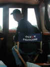 James and his mum on the bridge of MV Lord Of The Glen.