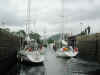 A Norwegian and German yacht join us in Clachnaharry Sea Lock. Caley Canal.