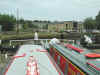Looking up Brighouse Locks to the basin and Sagar Marine. Calder and Hebble Navigation.