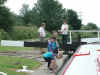 Roger and Chris plus some little urchins at Cromwell Lock. Calder and Hebble Navigation.