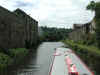 sharp turn out of Battyeford Flood Lock. Calder and Hebble Navigation.