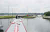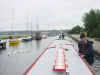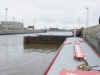 Leaving Spike Island Lock. The inflatable belongs to Mersey River Rescue, which