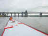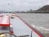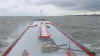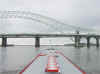 Creeping through the Runcorn Bridges. Mersey River Rescue keep watch. Tidal