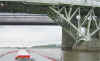 Mersey River Rescue shadow us during our slow plod through the Runcorn Bridges.