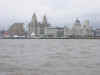 Liverpool Pierhead and The Three Graces. Mersey Estuary.