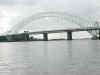 Creeping through the Runcorn Bridges. Tidal River Mersey.