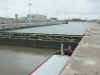 Safely in Langton Lock, Liverpool Docks. The outer gate slides into position.
