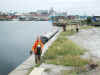 on dry land! Peter Wright and Martin Clark look on. Liverpool Docks.