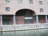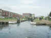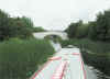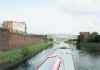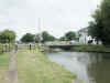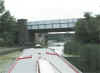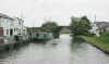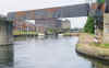 The removed towpath bridge is now a pipe bridge. Entrance to the Stanley Dock