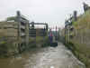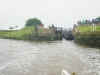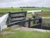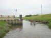 Tarleton Lock No 8, with its outer flood gates and dubious flood wall round the