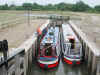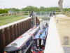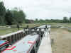 Tarleton Lock No 8. The first wave of narrowboats have got out over the bottom