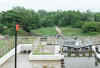 Looking back. The poles on opposite sides of the bank by the crane are the