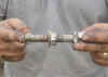 stone edging blocks as a vice. Because the locked together stud would have to use the face of the nut locking the bar sections