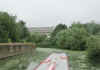 Bow Lock. Since the flood prevention works, involving raising towpath walls