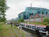 Earnest to get under, but did not cut out in the "open" position. Linda closed the bridge....but the barriers would not go up. Neil had of course crept on towards Kay Lane Lock No 64. Nothing happening with bridge, so Neil had to reverse back, temp moor Earnest, then go over barriers to assist Linda. Rather good traffic jam, with three busses and a lot of hooting.