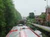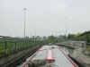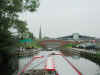 There were a lot of young (no more than 7 years old) kids on Henshaw Bridge (the old bridge before the M60 diversion) and even after a forced "hello" we still got showered with a LOT of small gravel and dirt. Sped on through deep M60 section and lost mini yobs at tunnel. The next bit of excitement was at Grimshaw Lane vertical lift bridge. When we did the canal in 2002, this was not yet finished and the road closed, so this was a NEW experience / bridge to do. It is a fairly busy road, with a bus route. Linda waited a while for a lull in the traffic, then did the bridge. just a one button up, one button down job. The bridge lifted enough for