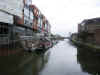 Looking down Three Mills Wall River at the drying residential berths and Three
