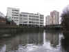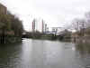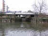 Bow Creek. Under the railway bridge is the junction with Three Mills Basin