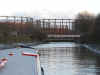 Yet again we wait for more water. Access bridge and railway bridge beyond.