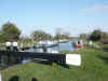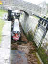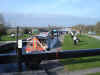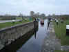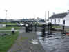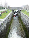 extreme French style, with the top chamber completely empty and the centre gates open. Once we were in the bottom chamber Alan expertly let the water in until we could get over the centre cill and get