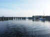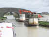gauge railway Bord Na Mona bridge. we were lucky to look back and see a turf train heading across the bridge. The entrance to Shannon Harbour was soon upon us, we winded below as the flow was quite strong, then pulled in against it. The entrance to the Grand Canal is
