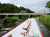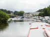 It was an early tide up to St Mullins (06:45) and you guessed it, it was exactly a two hour cruise. Timing was yet again perfect, we arrived at the top of the tide, just as a GRP cruiser was locking out, to go down to New Ross. As there had been quite a lot of rain it was quite hairy on the Barrow, some sections on the outside of bends, boatstream side were pretty fast flowing. We decided that conditions would probably get worse, as yet more rain was forecast, so we had a long day and got all the way to Carlow, arriving at 20:45. The logic in this was that the faster flowing sections of the river were below Carlow. On the way up, we spotted only one other moving boat, Peter Acheson off the IWAI newslist in his Haines cruiser, this was just below Goresbridge.