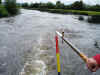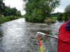 We battle against a rather fast flow in the boat stream below Lower Ballyellen Lock. River Barrow