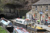 Fire Station moorings, Waterside Lock No 21E beyond. Slaithwaite.
