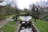 Exiting Moorvale Lock No 35E. Cellars Lock No 34E beyond. Marsden Flight.