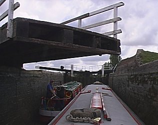 Kennet Valley, the wide beam horse drawn trip boat coming out of the lock. We applauded his excellent boatmanship in quickly picking up the tow. The wet rope twanged in the air