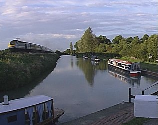 |  The small and large electric pumps filling up the summit pound. These pump water up from Wilton Water into the Crofton Pumping station leat, which is at summit level. Kennet and Avon Canal. |  Our mooring for last night, just below Crofton Lock No 60. HST's continue to flash past. Kennet and Avon Canal. |