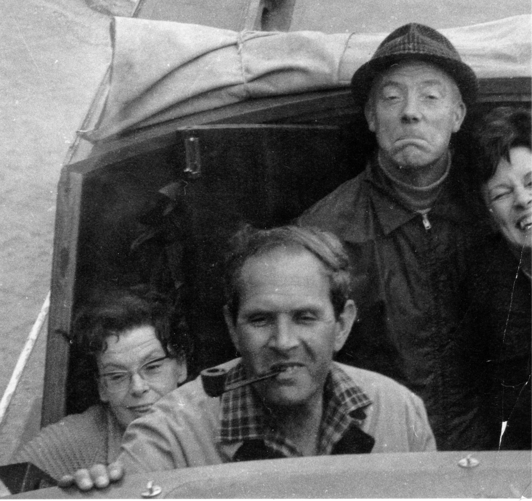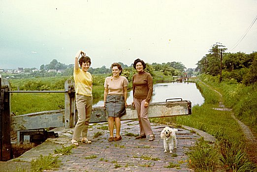 ![]() Ian Scott, Steve Roberts (behind) Marion Scott (Ian's Mum), Doreen Etheridge (Neil's Aunty "Do Do") and Maurice Arlidge (Neil's Dad). Coming back down Hack Green Locks. Shropshire Union Canal. |
