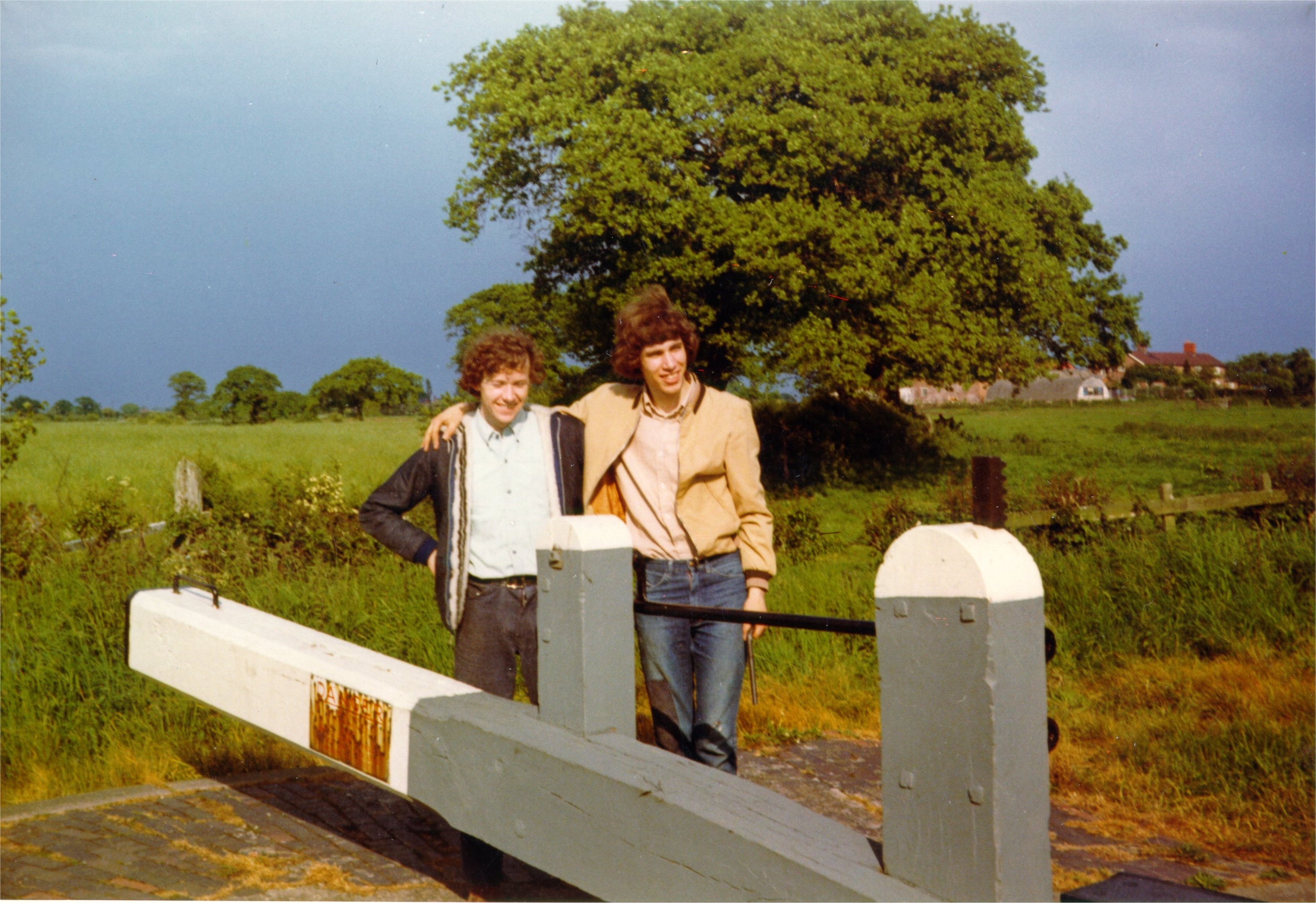 ![]() Ian Scott and Steve Roberts in front of freshly painted grey gate. Shropshire Union Canal. |