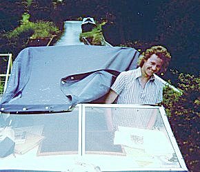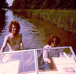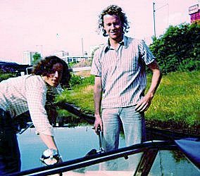 Another Ladyline hire boat two week holiday starting from Barbridge. The craft this year was a Norman 20, with a BRAND NEW Honda 4stroke 7.5HP outboard. This engine proved unable to cope with our demands. Neil checked the water filter, but it kept on overheating. the only way to get it to stop cutting out when it was under a lot of load, was to leave the cover off and cool it with cups of water. John Rushbrook got very good at this. The FULLY charged battery only lasted a couple of days. That was when used just for powering the slightly larger radio / cassette we now had on board. Ian Scott went for a walk with the useless battery one night and came back with a fully charged new one. John and Neil never asked where he got it from. We were prepared for the useless electrics on a Ladyline hire craft and had taken Neil's dad's camping Gaz lamps and a couple of large Gaz cylinders. These we had to sneak on board (with the beer!) when we loaded up. When under way Neil made a magnificent tunnel light reflector from an old biscuit tin! We seem to remember that the berths were better laid out than on a Dawncraft Dandy, there where only three and no "coffin" berths.