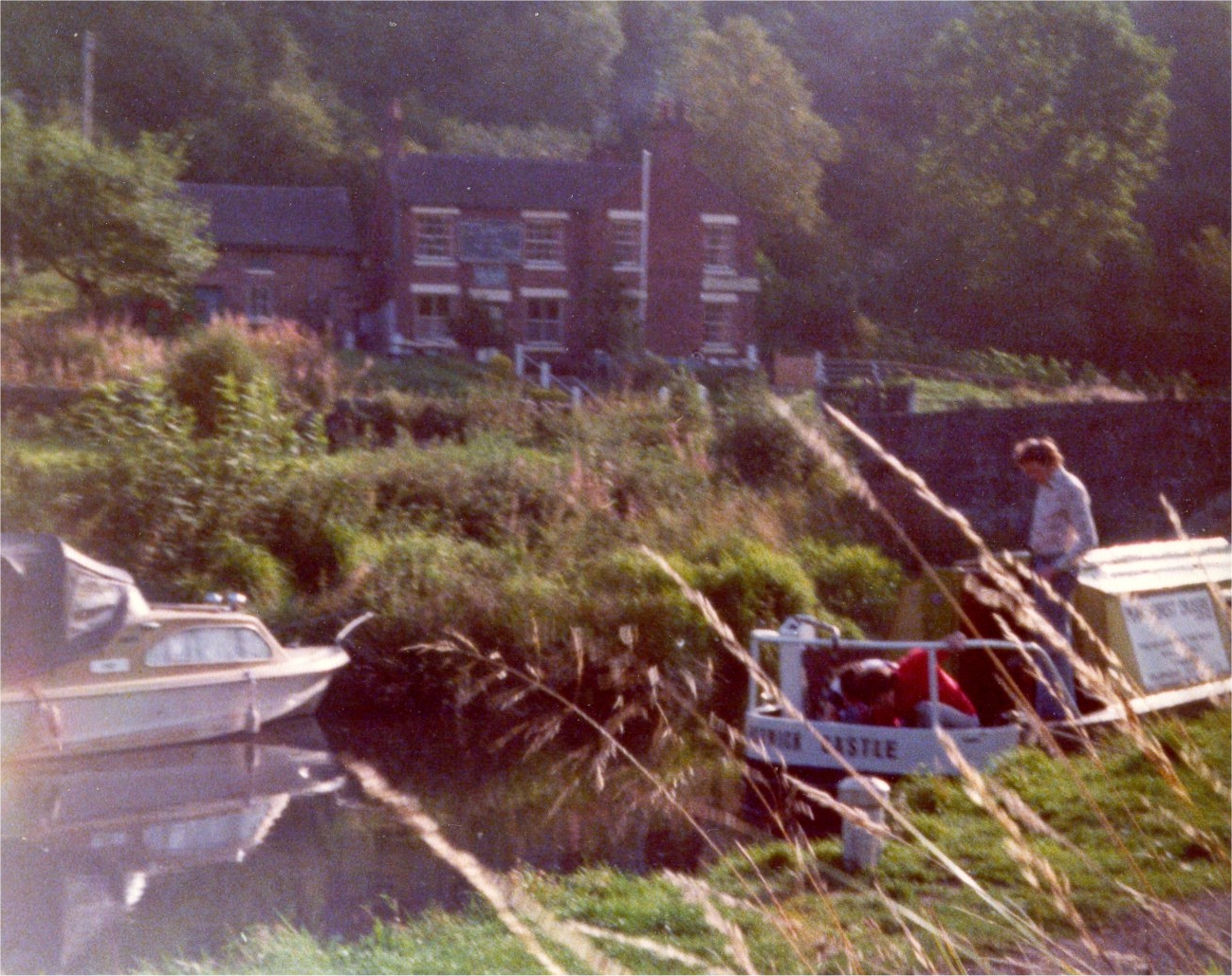 ![]() The inside of the Black Lion as WE remember it. Log fire and quarry tile floor. Julian E, Neil (obscured), John Fleming and Dave Creasy. Next time we are here we will take a picture from the same spot (if possible!) Neil was so impressed with the groovy 1970's orange wall, he painted his room this colour! Caldon Canal. |