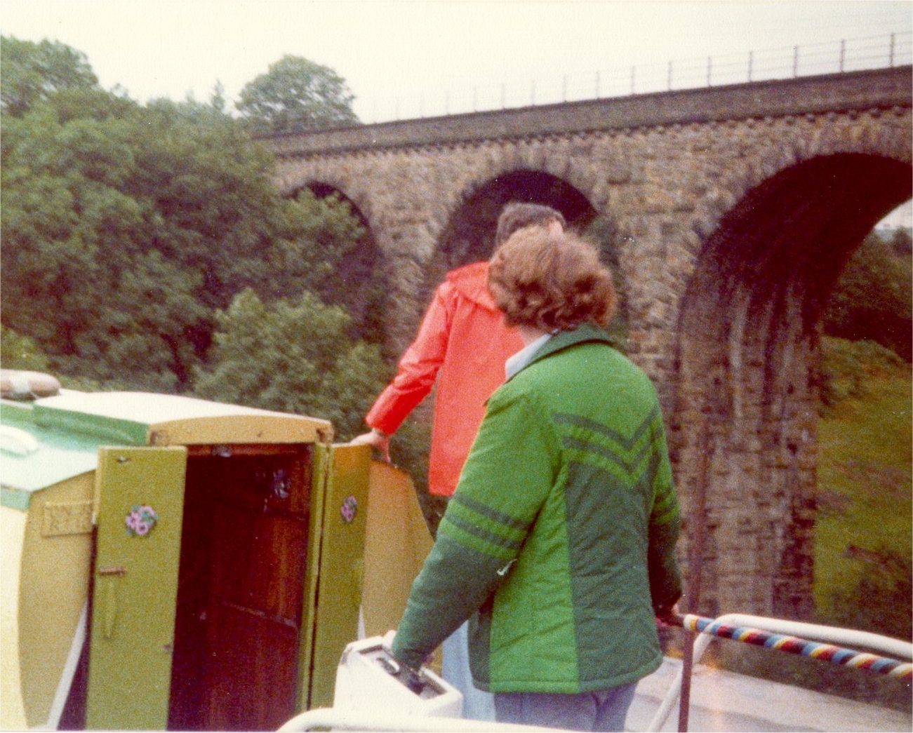 ![]() Going over Marple Aqueduct, (easy to mix up with Chirk!) Julian has his jolly green giant coat on - this he had for years! Lower Peak Forest Canal. |