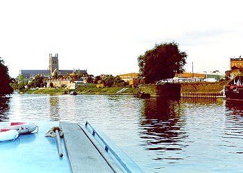 Saturday 2nd September - We left home at 10.30 and arrived at Upton at 15.00. We were soon off up the River Severn to Worcester. We moored up on the river by the cathedral at 20.00. (We still moor there, although it is now not fashionable.) That night we went out the Schooner Inn by the bridge (presumably this became a Beefeater - can't remember what it was called.)