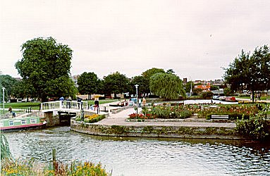 ![]() Entrance Locks to Diglis Basin, start of the Worcester and Birmingham Canal. Worcester Cathedral in the distance. Our favourite mooring are in the far distance, in front of the Cathedral. You have to be prepared to use gang plank off the roof and moor to trees. River Severn. |