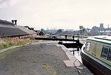 ![]() Fradley Locks on the Trent and Mersey Canal. (Slide by John Rushbrook.) |