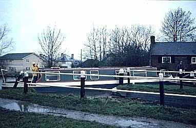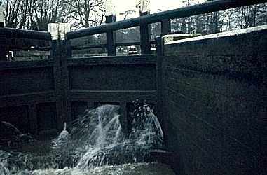 ![]() River Wey Navigation. New Haw Lock, before the surviving turf side was filled in. |