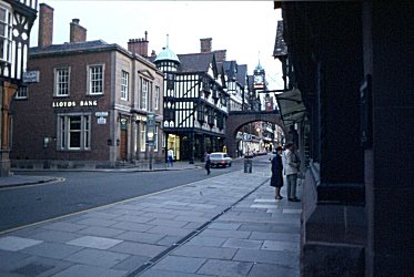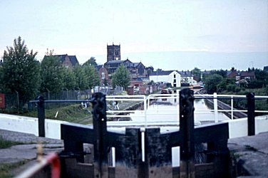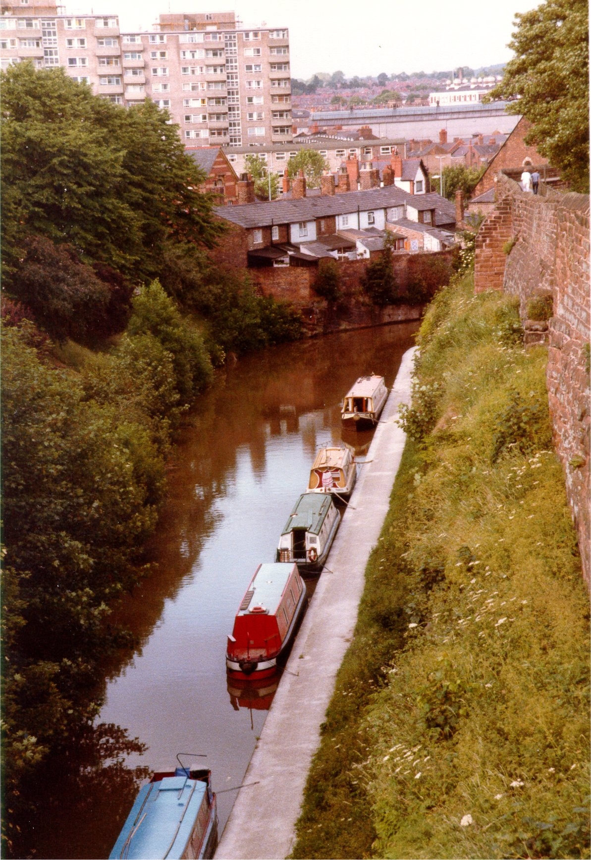 Thursday June 21st - We left early at 6.30 after an ablution wake up call from Julian! At Barbridge Junction we turned right on to the Chester section of the Shroppie. Arrived at Chester and moored in the "moat" above Northgate Locks. This was at 18.30. That night we went out to the newly opened Slow Boat Chinese restaurant, by the bridge, above the Bejam supermarket. This was a very good meal. (we did return in 1999, the food was lacklustre and the restaurant now owned by English! - this Bejam is now an Iceland)