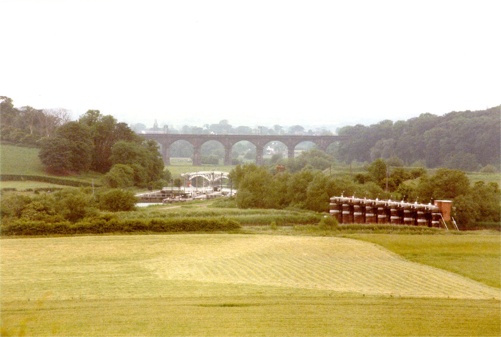 ![]() Telephoto shot down at Saltersford Locks on the River Weaver from the Trent and Mersey Canal near Saltersford Tunnel. |