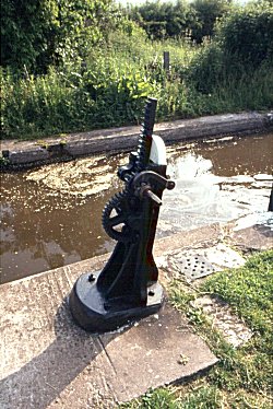 ![]() Rochdale Nine Locks. Note the classic reversed windlass paddle ratchet |