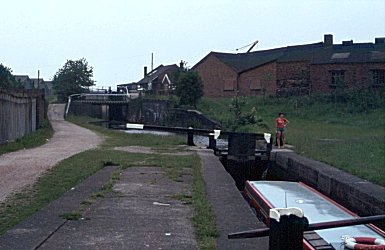 Thursday 28th June - Late start at 9.00, as Neil spent an hour fixing a, by now, serious leak in the galley. As was the norm then, no trouble overnight at top of the 21. Carried on along the Main Line until Factory Junction. Here we carried straight on down Factory Locks, along the New Main Line (Birmingham Level.) At Dudley Port Junction, we took the left turn, down the Netherton Tunnel Branch. Normal half hour roar through the tunnel, no body else about. At Windmill End, carried straight on down Dudley No2 Canal. BWB had been doing a fair bit of work around here, since we were last here and we had an easy passage to Park Head Junction. The Park Head Locks up to the Dudley Tunnel were locked up. We had a quick walk up to the tunnel. The pounds between the three locks were dry and in a state. The tunnel was closed again at this time. Having rounded the corner past the boarded up and semi derelict Blower's Green Pump House we carried on down the Dudley No 1 Canal, through Blower's Green deep lock. There was still much more working industry along here, up to the Earl of Dudley, Round Oak Steel Mill. Here Thatcher's Britain was in full throw, the steel works were in the final stages of demolition. Large sections of the steel sheds lay collapsed on the ground, as they were being cut up with indecent haste. (Today this site and its associated tips are the Merry Hill Shopping Centre.) No one else about on Stourbridge Canal. Dadford's Shed, by Lock 11 of the Stourbridge Canal was still clinging to life. At Stourton Junction we turned right, up the Staffs and Worcs Canal. We stopped at 20.00 at Greensforge, just above the lock and retreated to the Navigation pub. Here Neil got ill after ordering a second portion of Scampi and chips. After some delay he complained about it's non arrival. It then appeared rather quickly - too quickly - as the scampi were evidently under cooked!
