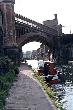 ![]() Dukinfield Junction. Portland Basin ahead. Huddersfield Narrow Canal to right and Ashton to the left. Lower Peak Forest Canal. |