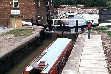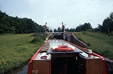![]() Going up Middlewich three locks. Trent and Mersey Canal. |